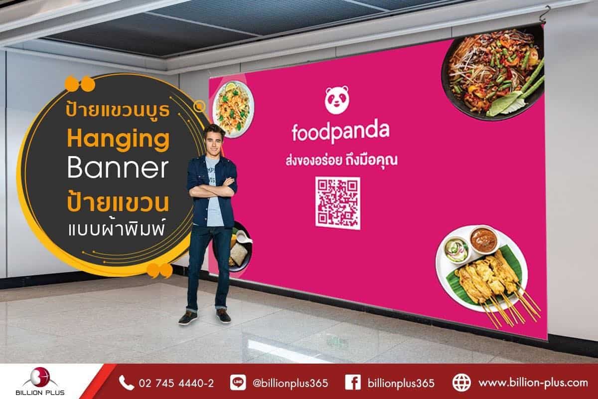 ป้ายแขวนบูธ Hanging Banner ป้ายแขวนแบบผ้าพิมพ์ ป้ายบูธ ยาวไร้รอยต่อ