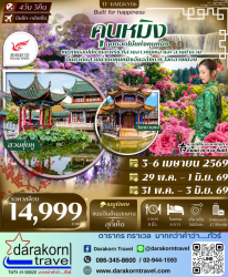 ราคา : 14999 ติดต่อ: Darakorn Travel โทร: 0863458600 [อัพเดท 19/03/2026] |